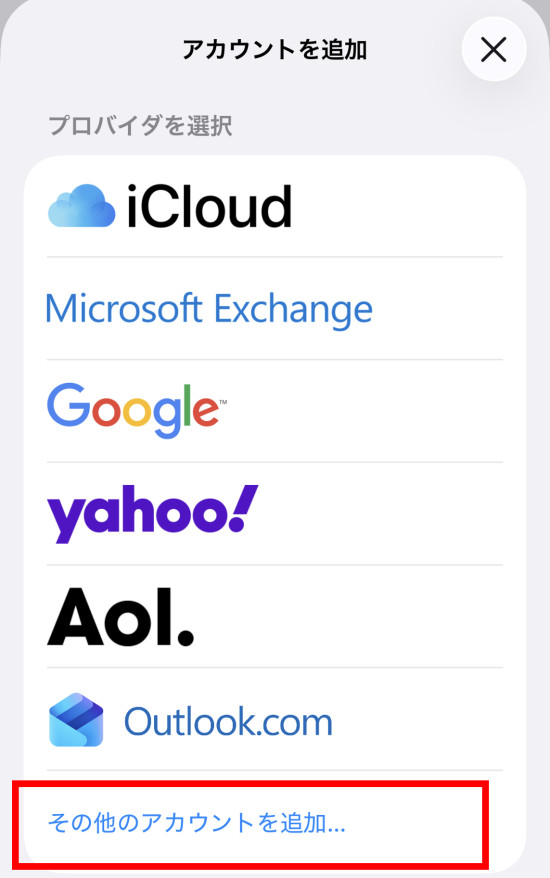 7.[その他のアカウントを追加]をタップします。