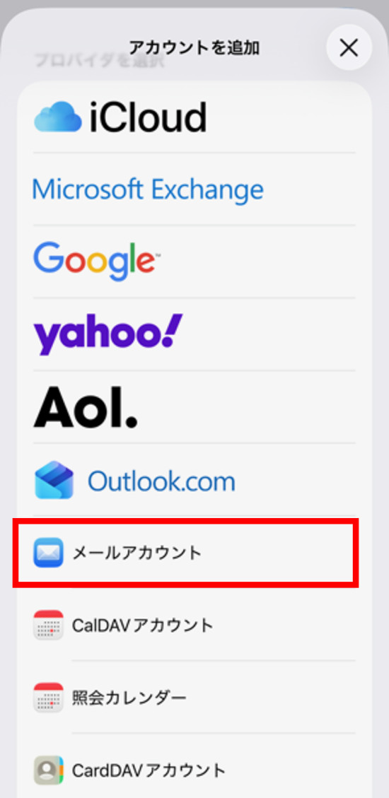 4.[メールアカウント]をタップします。