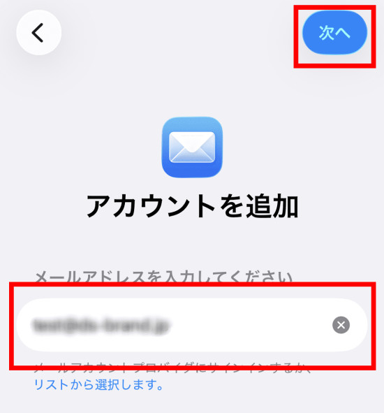 6.メールアドレスを入力し、[次へ]をタップします。
