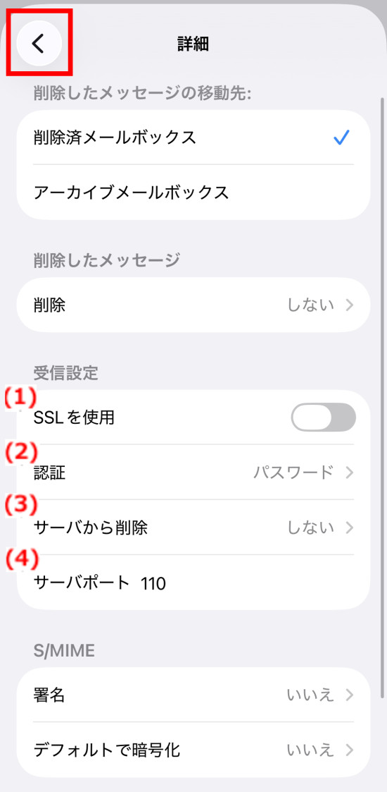 18.SMTPの画面に戻ったら、左上の矢印マーク