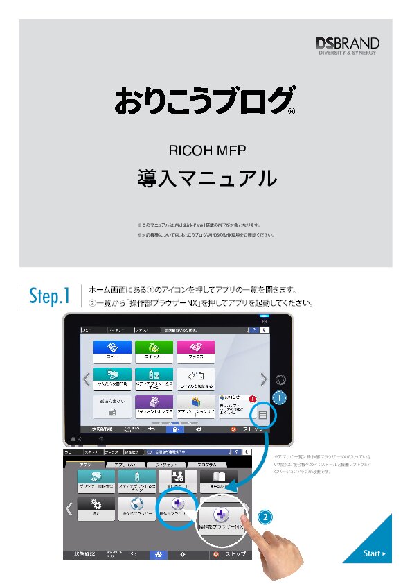 複合機連携機能トップページ > 複合機連携機能ログイン・ログアウト新規作成ページを追加する・差し替えるカタログやページを削除するカタログやページを並び替えるカタログ設定カタログ印刷RICOH複合機 導入マニュアルおりこうブログAI RICOH複合機 導入マニュアルのダウンロード(2312KB) RICOH複合機へおりこうブログAIを導入するためのマニュアルです。このマニュアルは、現在発売中の株式会社リコー製デジタル複合機「RICOH シリーズ」(IMCモデル)が対象となります。※Zモデル以前の複合機については、複合機連携機能は対応しておりません。