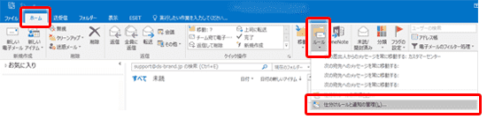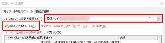 2.「仕分けルールと通知」ウィンドウが表示されます。
