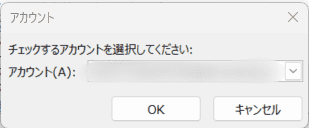 8.「アカウント」ウィンドウが表示されますので、振り分けルールを適用したいアカウントを選択し、[OK]をクリックします。