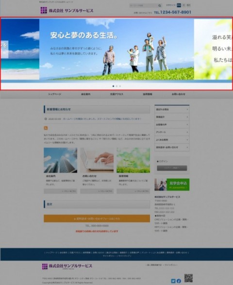 画面いっぱいにメインビジュアルを表示しますので、閲覧者に対し強いインパクトを残す効果が見込まれます。