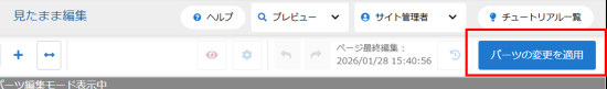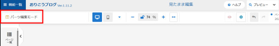 見たまま編集画面左上の[パーツ編集モード]をクリックします。