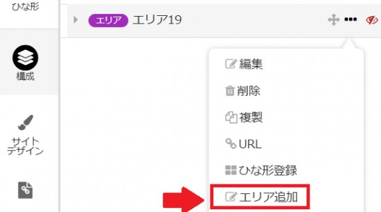 右にある「…」(その他の操作)マークをクリックし、エリア追加ボタンをクリックすることで追加が可能ですが、作成上限数の20個ある場合はエリア追加ボタンが表示されなくなります。
