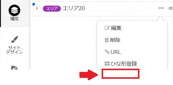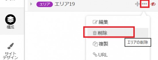 1.削除したいエリアの右にある「…」(その他の操作)マークをクリックし「削除」を選択します。