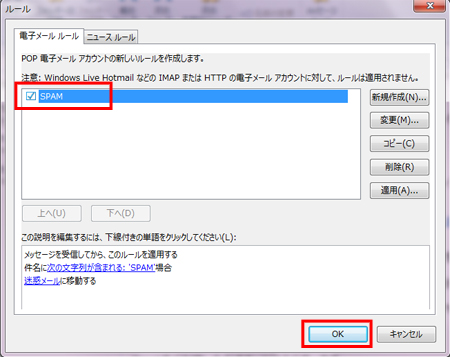 SPAMメールを、指定フォルダに振り分ける方法を教えてください。(Windows Liveメール 2011・2012)