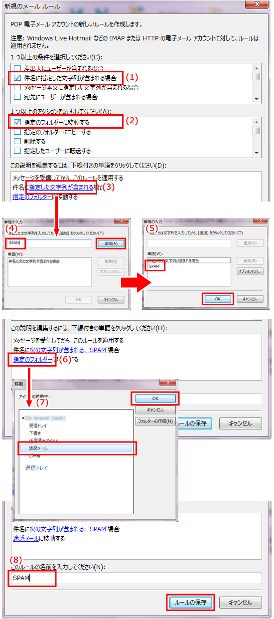 (7) SPAMメールを移動したいフォルダを選択(例:迷惑メール)