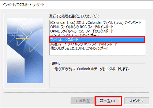 3.「実行する処理を選択してください」欄から「ファイルにエクスポート」を選択し、