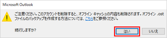 3.Outlookよりメッセージが表示されますので、「はい」をクリックします。
