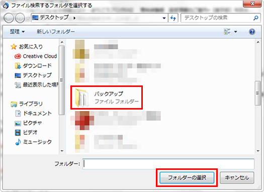 | 9. | フォルダの選択画面が表示されますので、事前にエクスポートして保存したメッセージデータのフォルダを選択し、「フォルダーの選択」をクリックします。 |